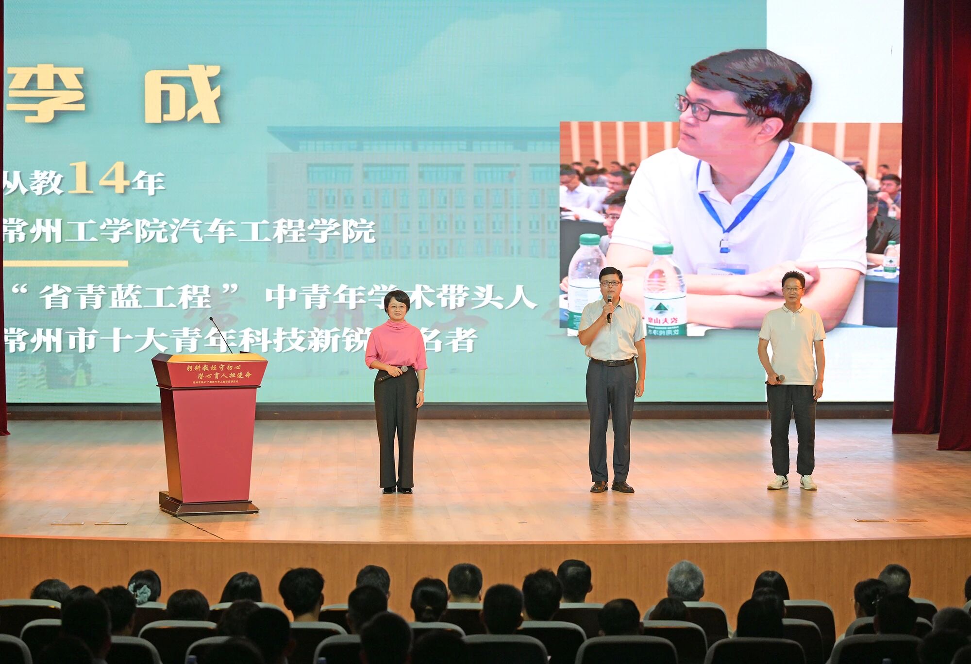 活动在温馨的教师节主题短片中拉开帷幕。在“相信研究的力量”育人故事分享环节,李成教授与来自小学、高中的两位教师一同登台,娓娓讲述各自长期投身教育科研的动人经历。李成教授结合多年教学与科研实践,深情回顾了其在教书育人道路上的心得与感悟。他分享了如何将新能源汽车技术的前沿研究成果有机融入课堂教学,始终秉持“研究促进教学,把课题做在学生中”的理念,为常州产业发展培育兼具创新意识和实践能力的新生力量。他还围绕大学教师作为“学者”与“教育者”的双重角色展开思考,强调既要在学科领域推动知识创新,更须深入研究知识的有效传承与转化。他们的故事真挚而温暖,充分展现了深厚的教育情怀与强烈的责任担当,引来现场阵阵热烈掌声。